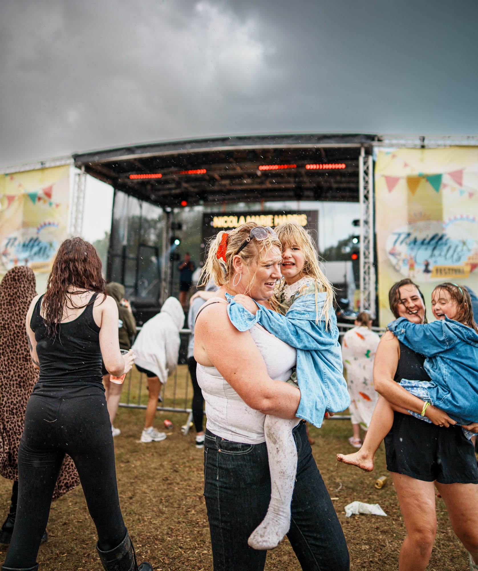 It was at a country music tribute festival when the rain came down so hard, and, as they say in country parlance, "like a cow pissin’ on a flat rock". It was all a bit overwhelming. Adults, let alone children, looked like they didn’t quite know how to handle their emotions. This little girl was swept up by her mum and she really didn’t know whether to cry or laugh. Shania Twain (aka Nicola Marie Harris) had been brought to a sudden, fizzling end by the deluge. It really was a matter of whether you laughed or cried. I think the girl wanted to laugh and smile at the camera, like the rest of her family, but that frown refused to turn upside down and the result was a face as stormy as the weather. However, if you look just to the right you can see her friend was managing to see the funny side, and with a little bit of cajoling I think in the end she managed that too.