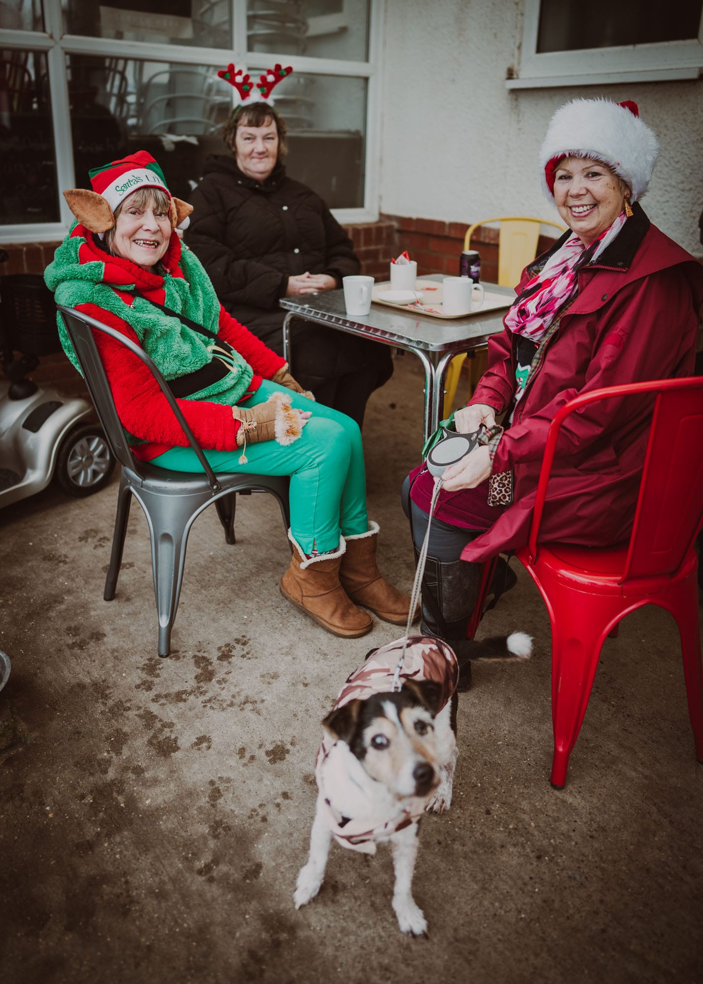 I assume that a conversation had taken place between these three friends where it was decided that they should all dress in Xmas costumes for their meet-up that morning. I think the lady in red and fur probably made the call. Elf lady was very keen, I reckon, but I think the lady in the black coat and reindeer antlers probably needed a bit more convincing, and I’m sure me walking past with a camera was the very last thing she had on her Christmas list. I think the dog had a cataract, so he’s looking at the world through a semi-opaque lens anyway, and seemed quite happy to be photographed – I would say he’s almost smiling, in fact. The whole ensemble makes me smile. It was just one of those funny moments that, without a camera, you’d probably notice but just walk past, or continue to think about how to make parsnips taste nice. I was just happy to catch it, and at least three-quarters of the group look happy to have their moment documented.